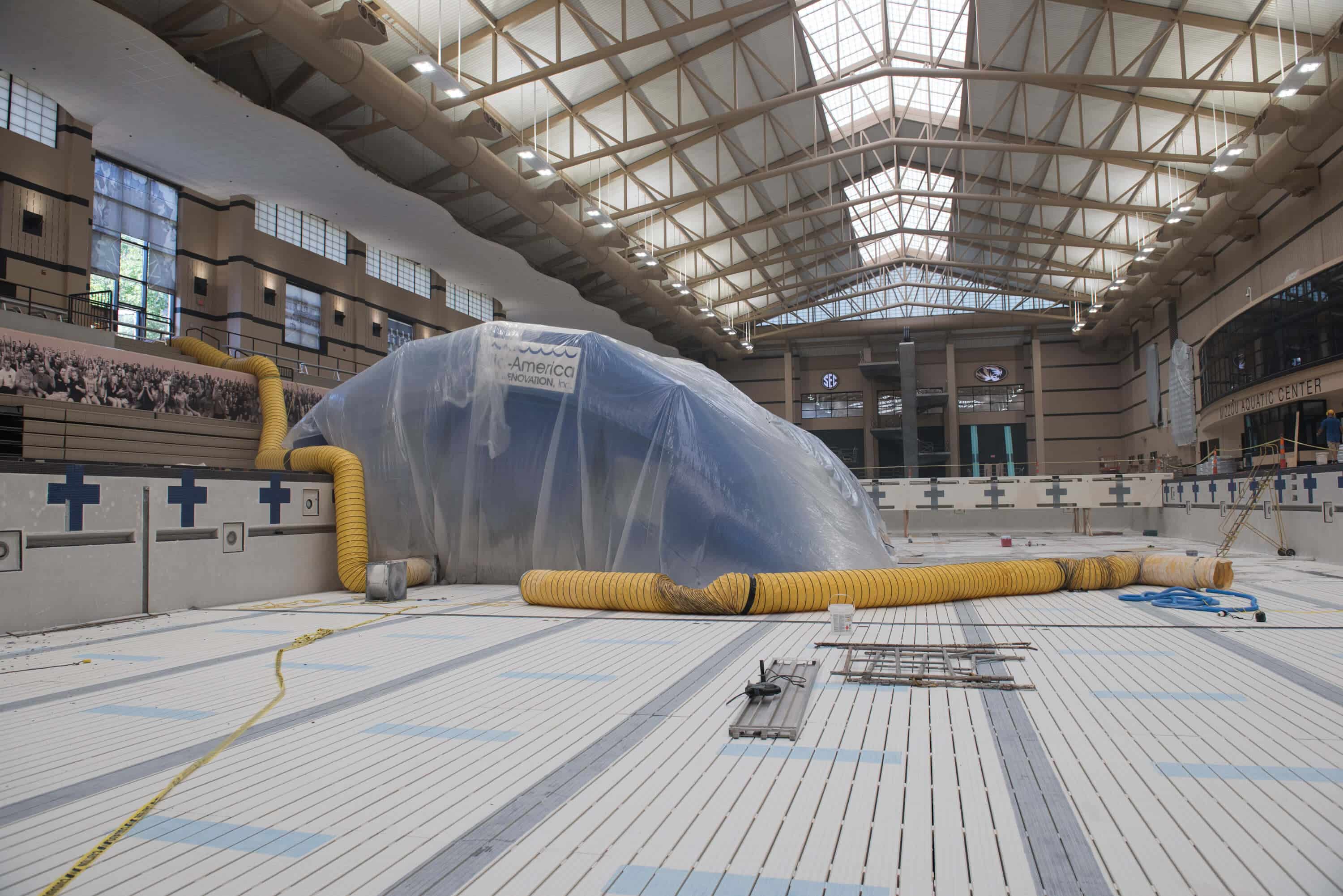 Built in 2005, the Mizzou Aquatic Center at the University of Missouri houses four swimming pools, the most notable being the Olympic sized, 50-meter competition lap pool. Originally constructed of a solid concrete base with a plaster interior surface, the University decided to undergo construction to restore this massive lap pool in 2018.